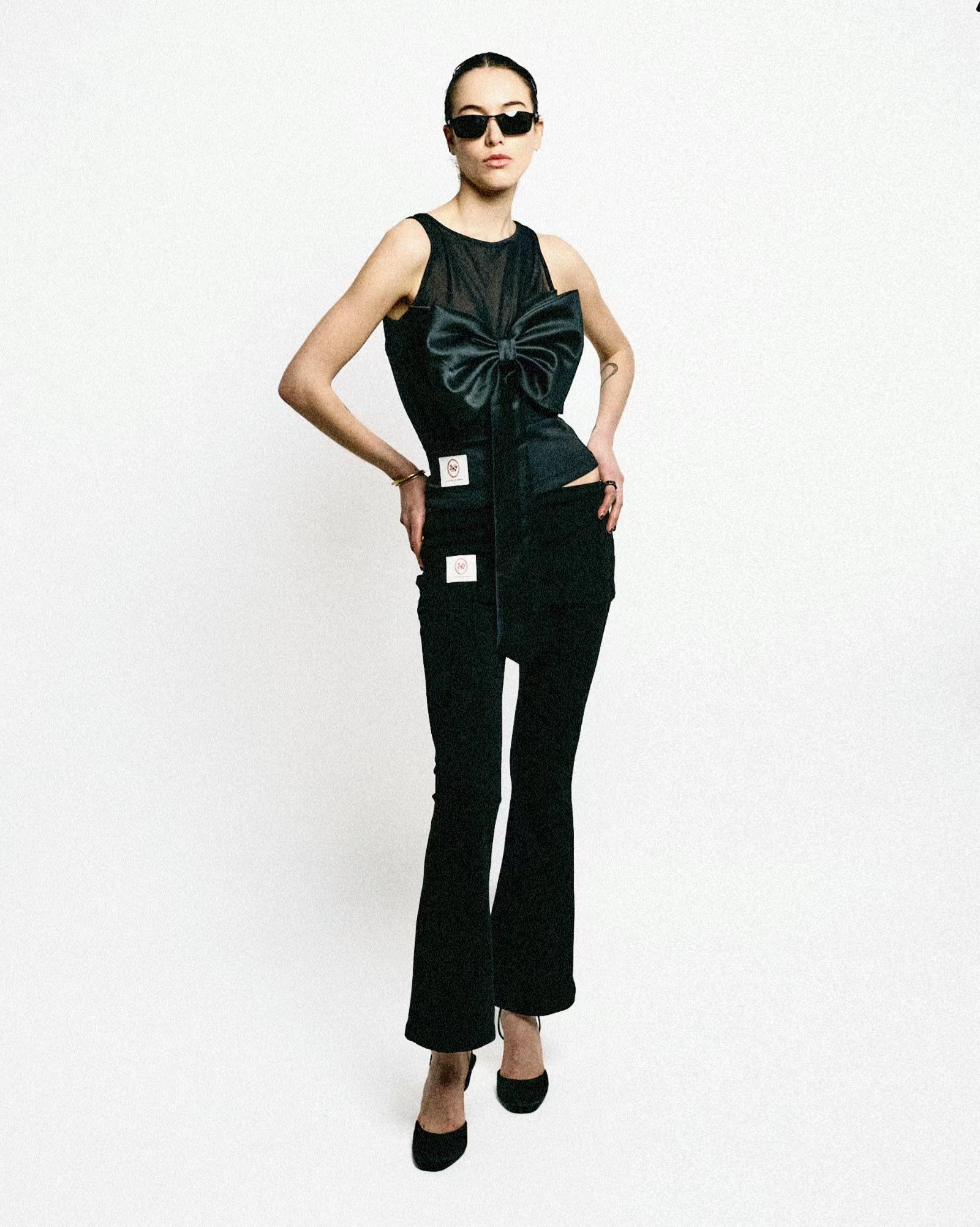 Hollow out oversized bow mesh vest